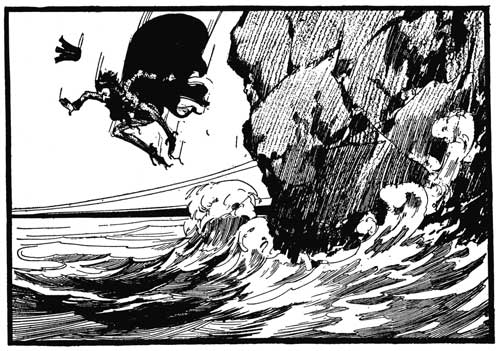 The wind blew hard and joggled the water of the ocean, sending ripples across its surface. Then the wind pushed the edges of the ripples until they became waves, and shoved the waves around until they became billows. The billows rolled dreadfully high: higher even than the tops of houses. Some of them, indeed, rolled as high as the tops of tall trees, and seemed like mountains, and the gulfs between the great billows were like deep valleys.