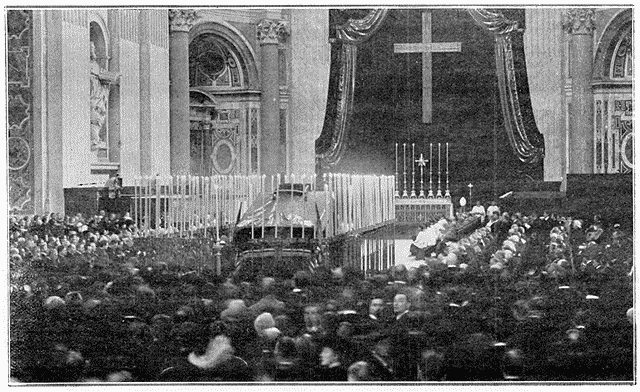 Quelques minutes après, Monna Lisa entre au palais Farnèse et prend place dans la galerie des Carrache. La première visite qu'elle y reçoit est celle de S. M. la reine Marguerite, qui, pendant près d'une heure, s'entretient avec l'ambassadrice et ses quelques invitées. Vers 3 heures, tous les membres du corps diplomatique, les personnalités de la colonie française et les notabilités romaines remplissent les salons de l'ambassade d'un public d'élite, heureux de pouvoir contempler la belle oeuvre du grand maître florentin.