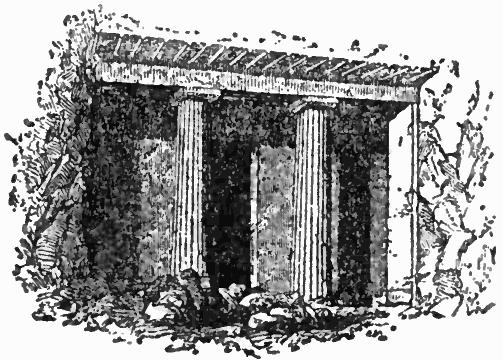 It has long been customary to give to the Etruscans, an Asiatic people who in very early times occupied a considerable portion of Italy, the credit of the first introduction of the arch in Western Europe. It is however now more generally believed that the Roman style of building was an offshoot of the Hellenistic, in which the dome was certainly employed, though no existing examples of its use can be quoted. The city of Alexandria, founded about 332 B.C. by Alexander the Great, is known to have had four principal colonnaded streets leading from a four-arched central building, and many are of opinion that much of the town was built over arched cisterns. The dome may possibly have been in the first instance introduced into western Europe as a cover for the hot baths in which the wealthy delighted, and its form was probably the same as that of the one preserved at Pompeii. The famous arched drain at Rome, known as the Cloaca Maxima, so constantly referred to as the greatest masterpiece of the Etruscans was not, it has now been proved, built until after their subjugation and extinction as a nation. For all that they were without doubt most skilful architects and engineers; the walls of their cities were of cyclopean masonry and were entered from arched gateways, a good example of which is to be seen at Volterra, constructed of wedge-shaped stones fixed without cement. Their rock-cut tombs, such as those at Corneto, Vulci, and Chiusi, are divided into many chambers, the walls adorned with paintings, the roof upheld by columns, and the façades resembling those of Egyptian temples, whilst the tumuli in which they sometimes buried their dead are surmounted by pyramids of earth resting on stone foundations.