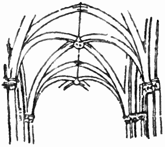 It was only by very gradual degrees that the trabeated mode of roofing and spanning was succeeded by what is known as the arcuated, or that in which the arch takes the place of the horizontal beam. In early Roman temples and palaces the Greek style was long carefully copied, but in utilitarian works such as bridges, viaducts, and drains the arch was employed at a very remote period. An arch whether circular or pointed consists of two series of stones cut into the form of wedges known as voussoirs, a central one at the apex or highest point called the keystone locking the two series together. This beautiful contrivance, the inventor of which is unknown, gradually revolutionised the science of architecture. It was used at first, tentatively as it were, in combination with the horizontal beam or slab of stone, but in the end became in its rounded form the distinctive peculiarity of the Romanesque and in its pointed shape of the Gothic style.