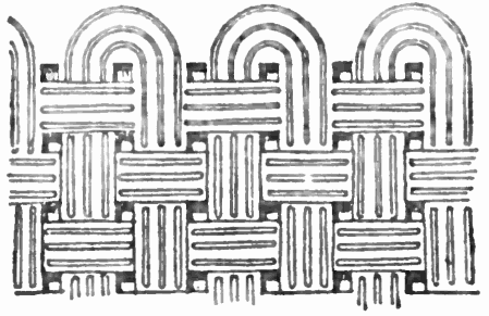 A minor characteristic of early Christian churches was the richness of the internal decoration, mosaics that is to say, patterns or pictures made of many coloured pieces of glass or stone, combined in certain examples with marble carvings and gilding, adorned the vaulting, the wall, and even the floor, a kind of mosaic known as the opus alexandrinum being generally used for the last, the whole producing a very gorgeous but harmonious effect.