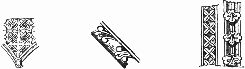 Wood appears to have been the earliest material used for the building of a home when out-of-door dwellings took the place of the caves that were the first shelters of primitive man. At Joigny in France there still exist examples of what are supposed to be the most ancient of all such dwellings, namely circular holes, locally known as buvards, in which the trunk of a tree had been fixed, the branches plastered over with clay forming the roof of a simple but rain-proof refuge. Huts of wattle and hurdle work dating from prehistoric times have also been preserved, some rising from the ground, others from platforms resting on piles sunk in the beds of lakes. These were in their time superseded by stronger structures, with walls made of squared beams piled up horizontally and fastened together at the corners with wooden pegs; the roof being formed of roughly sawn planks. Out of such primeval houses as these were evolved in the course of centuries the picturesque half-timbered cottages of mediæval Europe and the quaint wooden churches of Norway such as the characteristic one at Hitterdal.