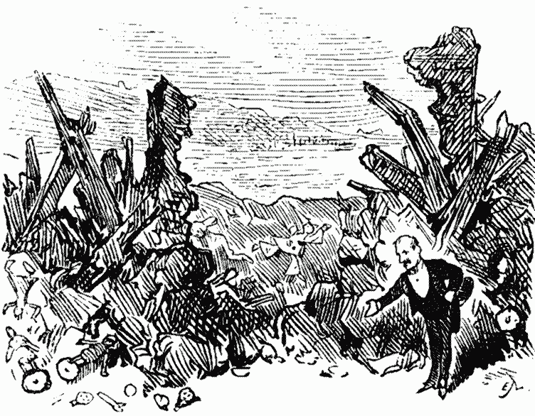 I was bewildered. We made our way from Newhaven to Chislehurst. We called upon the old man with the opal, of whom we had so often talked. He trembled. Outhouse seemed to swell to twice his natural height. Then the old chap with the opal appeared to wither under his gaze. Then he changed to all manner of colours, and literally exploded. He went off with a feeble bang, like a cheap firework. Not waiting to pick up his pieces, we returned to Dieppe, collared the omnibus old woman (whom we found on the point of strangling Ascena), and got her sent to prison, where she very properly committed suicide to save us further embarrassment. After these preliminaries had been successfully accomplished, I am pleased to say that Ascena enjoyed peaceful dreams and sweet repose.