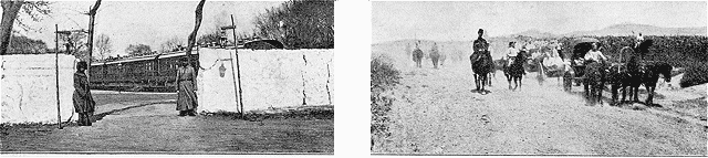 | Le train du général Kouropatkine sur une voie de garage. | Le général Kouropatkine allant, en troïka, visiter un campement de troupes. |