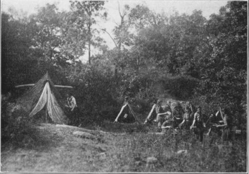 Shall we have a camp, and where shall it be, are the first questions that come to mind. Of course have it, even though it be for a small group only, and very simple as to equipment. The benefits derived by body, mind and soul cannot be over-estimated. The joy of finding and seeing for the first time the things that can only be found and seen in the open, living away from stilted civilization, flings open a door which rarely closes again for any length of time. Most people, and especially children, are not so far away from nature but that love and appreciation of it can be easily awakened by its beauty of color, form and sound, or its prodigality which cannot be rivalled.[10] Then to realize that all humanity is a part of this great system is to love all living things, to know they are good, and that it is fear which calls forth their antagonism, as has been proved time and time again. If such things as these can be learned by living in the open, have we not sufficient reason for providing the means to the end? Someone has said that "cutting the camp out of the Scout year is like leaving the yeast out of the bread."