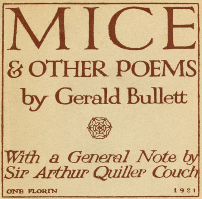 Let me, then, pass over Mr Gerald Bullett's verses with the simple remark that I believe in them (he himself calls them 'MICE'—no overweening title, however boldly printed. Yet mice were dear to Apollo Smintheus, and his proper emblem): and let me come to the general purpose of this Note.