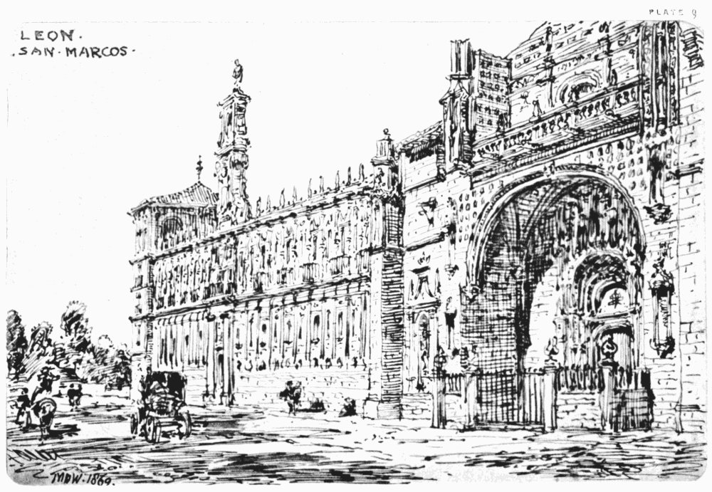 BEFORE quitting England for a first visit to Spain in the Autumn of 1869, I made up my mind both to see and draw as much of the Architectural remains of that country as the time and means at my disposal would permit; and further determined so to draw as to admit of the publication of my sketches and portions of my notes on the objects represented, in the precise form in which they might be made. I was influenced in that determination by the consciousness that almost from day to day the glorious past was being trampled out in Spain; and that whatever issue, prosperous or otherwise, the fortunes of that much distracted country might take in the future, the minor monuments of Art at least which adorned its soil, would rapidly disappear. Their disappearance would result naturally from what is called "progress" if Spain should revive; while their perishing through neglect and wilful damage, or peculation, would inevitably follow, if the ever smouldering embers of domestic revolution should burst afresh into flame. Such has been the invariable action of those fires which in all history have melted away the most refined evidences of man's intelligence, leaving behind only scanty, and often all but shapeless, relics of the richest and ripest genius.