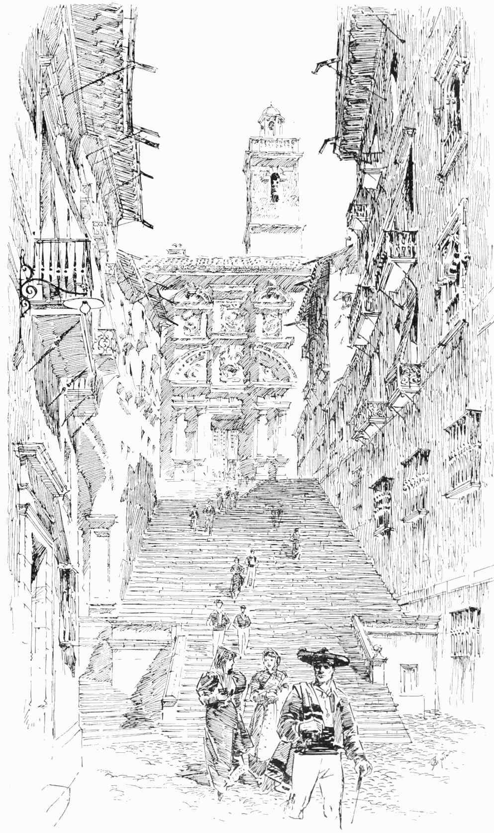 A Gerona señora—Grace and charm—Lord of creation—Morning greeting—Arcades and ancient houses—Conscription—Gerona a discovery—Streets of steps—Ancient eaves and rare ironwork—Old-world corner—Desecrated church—Gothic cloisters—Ghosts of the past—Visions of to-day—Soldiers interested—"Happy as kings"—Lingerings—Colonel seeks explanation—No lover of antiquity—More conscription—Dramatic scene—Pedro to the rescue—Mother and son—Sad story—Strong and merciful—Pedro grateful—Restricted interests—Colonel becomes impenetrable again | —58 |