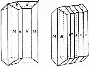 APOPHYLLITE, a mineral often classed with the zeolites, since it behaves like these when heated before the blowpipe and has the same mode of occurrence; it differs, however, from the zeolites proper in containing no aluminium. It is a hydrous potassium and calcium silicate, H7KCa4(SiO3)8 + 4½(H2O). A small amount of fluorine is often present, and it is one of the few minerals in which ammonium has been detected. The temperature at which the water is expelled is higher than is usually the case with zeolites; none is given off below 200°, and only about half at 250°; this is slowly reabsorbed again from moist air, and is therefore regarded as water of crystallization, the remainder being water of constitution. When heated before the blowpipe, the mineral exfoliates, owing to loss of water, and on this account was named apophyllite by R.J. Haüy in 1806, from the Greek ἀπο, from, and φύλλον, a leaf.