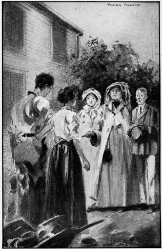 I sobered down to a walk, and together we slipped behind a century-old lilac bush at the corner of the house, and sought the front of the dwelling unobserved. The house was set with its side to the road, about one hundred feet into the lot. A long ell ran out behind, evidently containing the kitchen and then the sheds and outhouses. The side door, on a grape-shadowed porch, was in this ell, facing the barn across the way. The main body of the dwelling was the traditional, simple block, with a fine old doorway, composed of simple Doric pilasters supporting a hand-hewn broken pediment–now, alas! broken in more than an 11 architectural sense. It was a typical house of the splendid carpenter-and-builder period of a century ago.