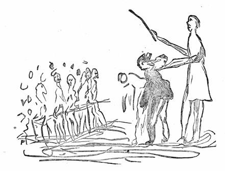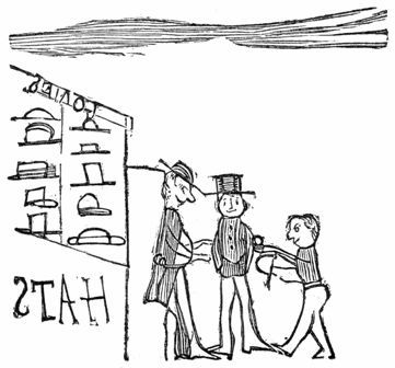 His father laughed and said: "Well, when I'm the little Tommy, I'll brush the snarls off my face—so, and throw them under the wheels—so, and let 'em get run over!"