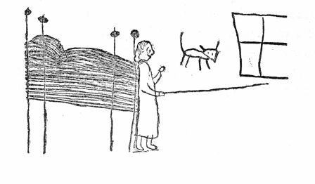 Towser was a big, shaggy, clever-looking dog. He got up slowly, sniffed at my trousers, then walked to Uncle Jacob, then round the room, then to the door, then up stairs and down again, and then back he went and lay down by the boots.