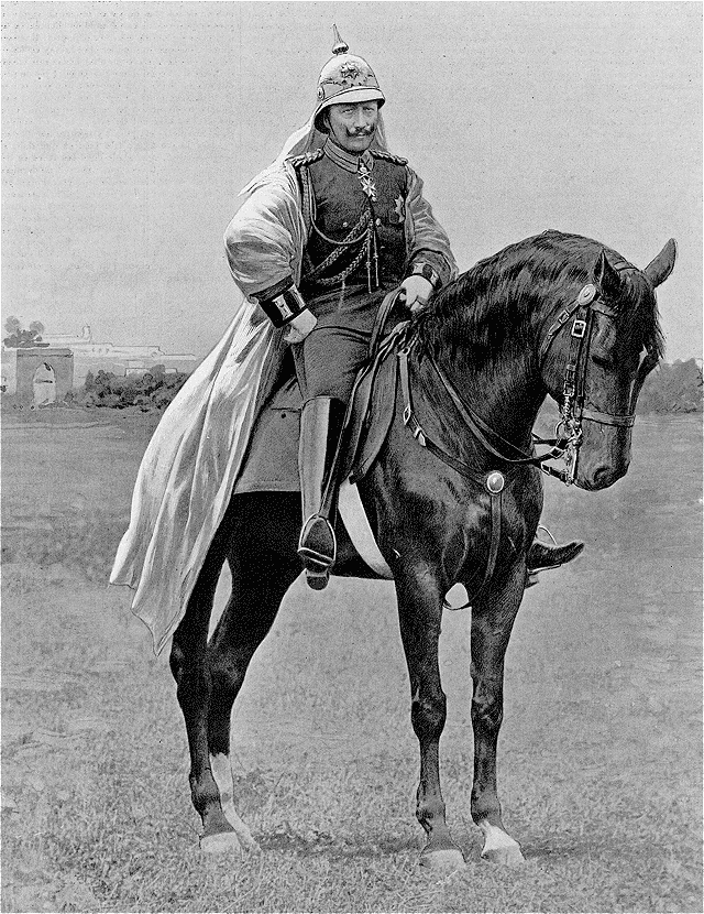 L'empereur d'Allemagne, vêtu de l'uniforme spécial, avec burnous et