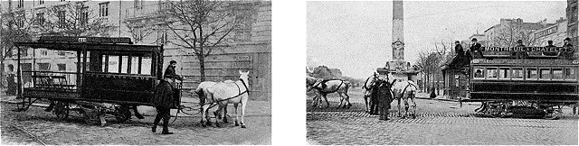 Nous avons pris le premier de ces tramways au moment où, sa course finie à très petit trot, son conducteur le fait tourner pour le remettre dans le sens de sa nouvelle direction.