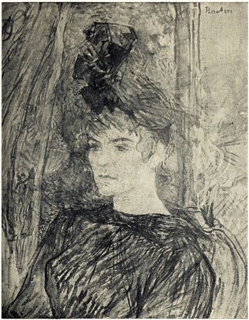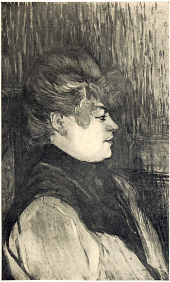 «Sous des dehors moqueurs, Lautrec était d'une nature très sensible, et il n'avait que des amis. Extrêmement liant, il était très serviable. Faible, il admirait la force chez les lutteurs et 23 chez les acrobates. Il était très bien élevé. En art, il fut toujours sincère. A l'atelier Cormon, il s'efforçait de copier le modèle; mais, malgré lui, il exagérait certains détails typiques ou bien le caractère général, de telle sorte qu'il déformait sans le chercher et même sans le vouloir. Je l'ai vu se forcer en présence d'un modèle à «faire joli», et ne pouvoir, à mon avis, y réussir. Le mot «se forcer à faire joli» est de lui. Ses premiers dessins et ses premiers tableaux au sortir de l'atelier, il les exécuta toujours d'après nature; il disait même qu'il ne pouvait travailler si le moindre accessoire n'était à sa place au moment où il travaillait. Il avait entrepris un portrait de moi; à ce moment, j'arrivais de ma province et j'arborais un superbe gilet de fantaisie jaune; immédiatement ce gilet fut dans l'œil de Lautrec, qui voulut me représenter en bras de chemise, sans doute pour mieux voir le dit gilet. Il commença et travailla quelques séances; sur ces entrefaites, je déménageai et on me vola ou je perdis mon gilet; il refusa alors de continuer ce portrait malgré qu'il fut très avancé; il en fit un nouveau tout à fait différent.»