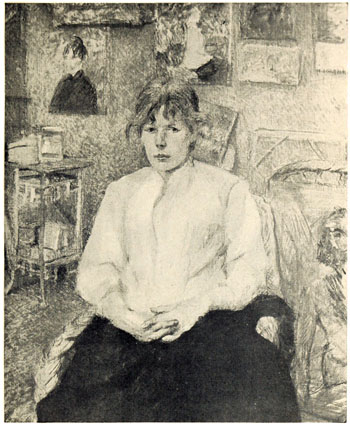 «Il a suivi avec moi les cours de l'atelier Bonnat, puis ceux de l'atelier Cormon où il étudiait de façon très suivie le matin, passant ses après-midi à peindre d'après nos modèles habituels: le père Cot, Carmen, Gabrielle, etc., soit dans mon petit jardin de la rue Ganneron, que j'ai habité 17 ans, soit chez M. Forest, propriétaire, rue Forest. Je ne crois pas avoir eu la moindre influence sur lui. Il venait fréquemment avec moi au Louvre, à Notre-Dame, à Saint-Séverin; mais, bien qu'il admirât l'art gothique, dont la vénération m'est restée, il manifestait déjà des préférences très marquées pour l'art japonais, l'art de Degas, de Manet et 27 des Impressionnistes en général, de sorte qu'il échappa à l'atelier alors qu'il y travaillait encore.