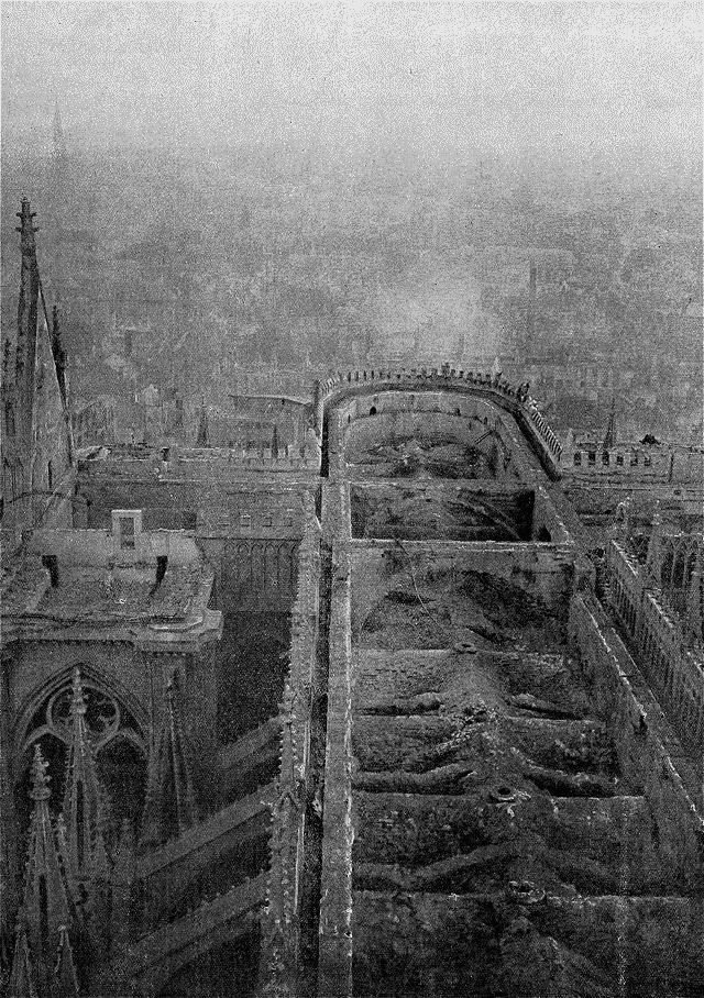 LA GRANDE NEF, DÉCOIFFÉE PAR L'INCENDIE, DE LA CATHÉDRALE