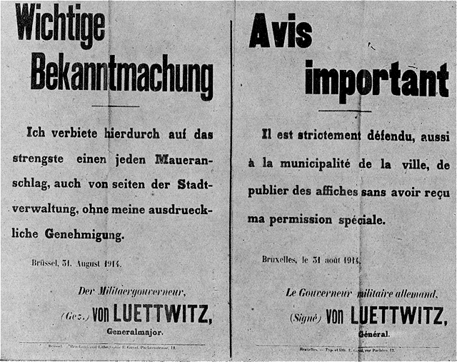 M. Gaston Chérau, qui s'était rendu en Belgique au mois d'août, pour y assister aux efforts de l'héroïque armée du roi Albert résistant à la formidable invasion germanique, s'est trouvé enfermé dans Bruxelles quand les Allemands y sont entrés. Ce n'est que trois semaines après qu'il a réussi à regagner la France, par Ostende et l'Angleterre. Nous avons déjà publié (numéro des 12 et 19 septembre) ses notes sur la destruction de Louvain. Voici maintenant son récit de l'occupation de Bruxelles par l'envahisseur: