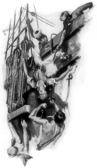 “Mein vrouw! mein gildren!” the Dutchman groaned. “What for you leave dem to de mercy of de savage?” with a look of fierce reproach at the two English captains.