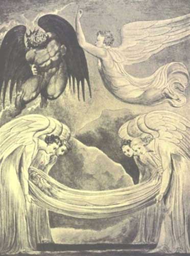 Little William Blake was not like other children, or he might have romped with his three brothers, John, James, and Robert, and his sister, Catherine. But from the first he was peculiar, sensitive, and liable to visions. His first recorded vision was in Peckham Rye. There he saw a tree filled with angels. He was neither startled nor surprised. It seemed entirely natural, and, childlike, he told his vision to his parents when he reached home. Visions were not in his father’s line of business. In the dark days of popish supremacy there had been idle monks who thrashed and starved themselves till they saw visions. Even the reformed Church of England knew better than that, and a[Pg 14] dissenter of the eighteenth century who spent his spare hours from the shop in reading knew precisely what were the things from which he dissented. He must nip William’s visions in the bud, and he would thrash him. Happily, Mrs. Blake stepped between. It was a jarring shock to an over-sensitive child that a heavy penalty awaited the mention of visions. He continued to see them, but he kept them to himself. His brothers and sister were like his father. Robert, who in after years would have understood, was in the middle of his teething, and it did not yet appear what he would be. Hence all things worked together to separate William from his family and to thrust him into the world of imagination.