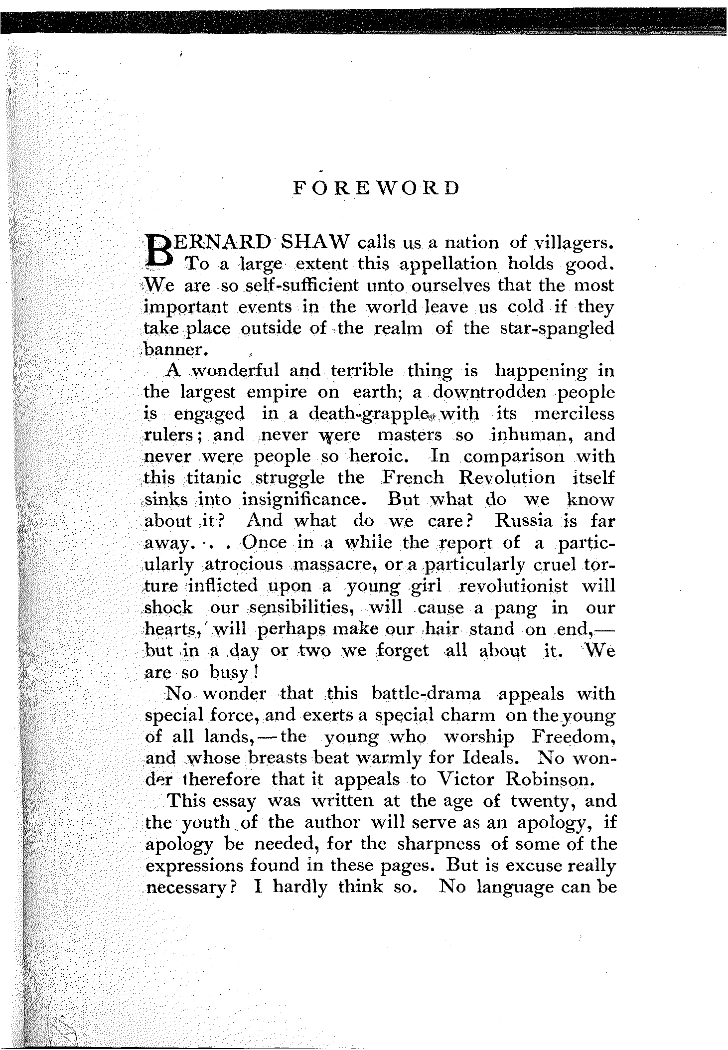 No wonder that this battle-drama appeals with special force, and exerts a special charm on the young of all lands,—the young who worship Freedom, and whose breasts beat warmly for Ideals. No wonder therefore that it appeals to Victor Robinson.