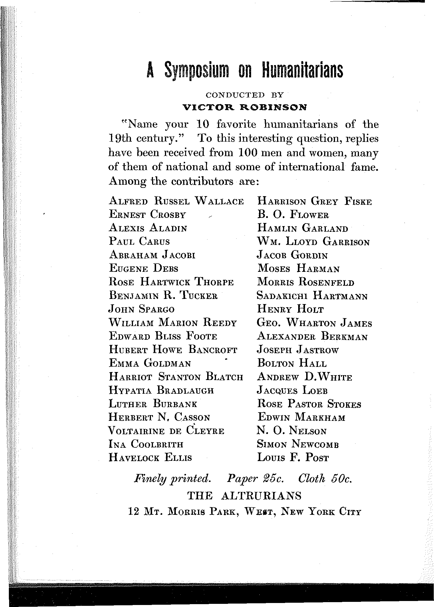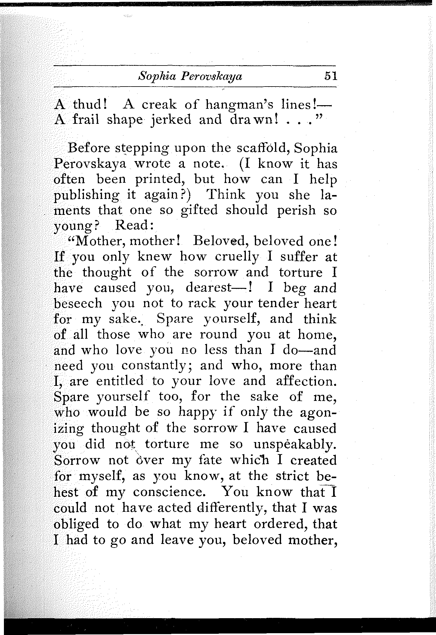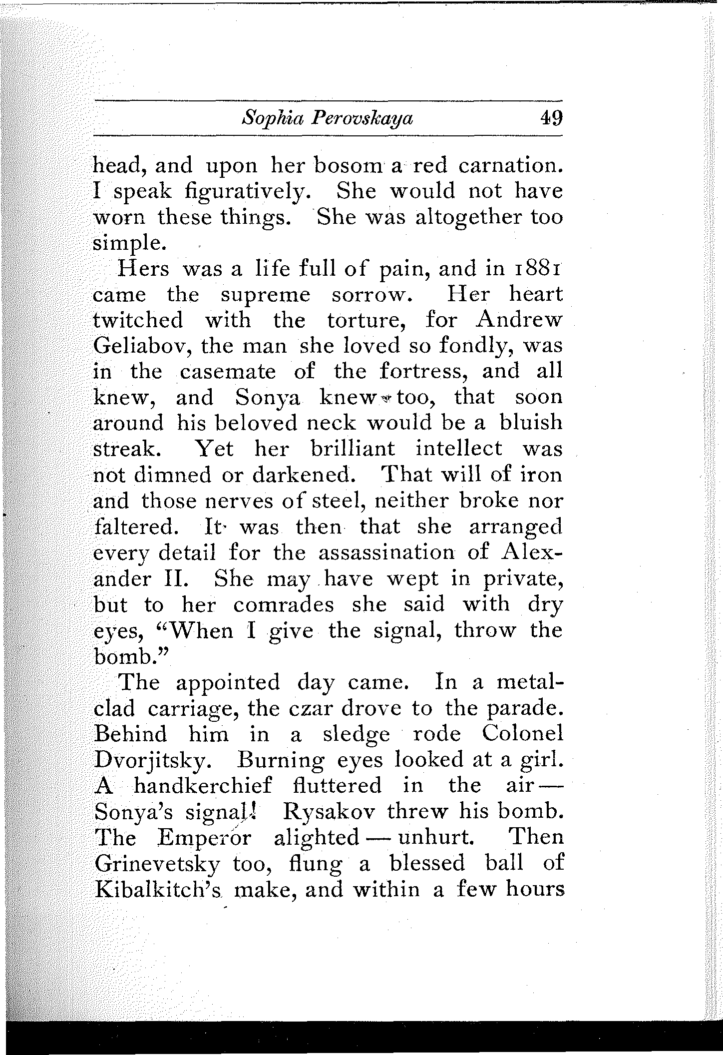 A wonderful and terrible thing is happening in the largest empire on earth; a downtrodden people is engaged in a death-grapple with its merciless rulers; and never were masters so inhuman, and never were people so heroic. In comparison with this titanic struggle the French Revolution itself sinks into insignificance. But what do we know about it? And what do we care? Russia is far away.... Once in a while the report of a particularly atrocious massacre, or a particularly cruel torture inflicted upon a young girl revolutionist will shock our sensibilities, will cause a pang in our hearts, will perhaps make our hair stand on end,—but in a day or two we forget all about it. We are so busy!
