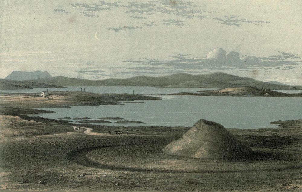 On the afternoon of Saturday the 6th of July, therefore, guided by the experience of Mr. George Petrie, and assisted by the professional knowledge of Mr. Wilson, road contractor, ground was broken on the west side of Maes-howe, and on the same evening, Mr. John Stuart and Mr. Joseph Robertson of Edinburgh, with Colonel Forbes Leslie of Rothie, and Mr. James Hay Chalmers of Aberdeen, arrived by the Prince Consort steamship. As it was anticipated that a couple of days would suffice to make a large opening in the tumulus, arrangements were made for meeting there on the 10th of July. Before proceeding with the description of what followed, it may not be out of place to give a short account of the Stones of Stennes, as described by Lieutenant Thomas in a work published by him in 1851:—