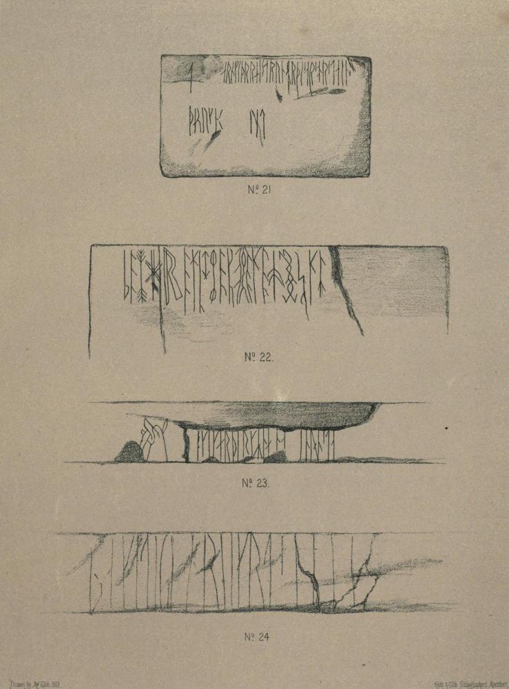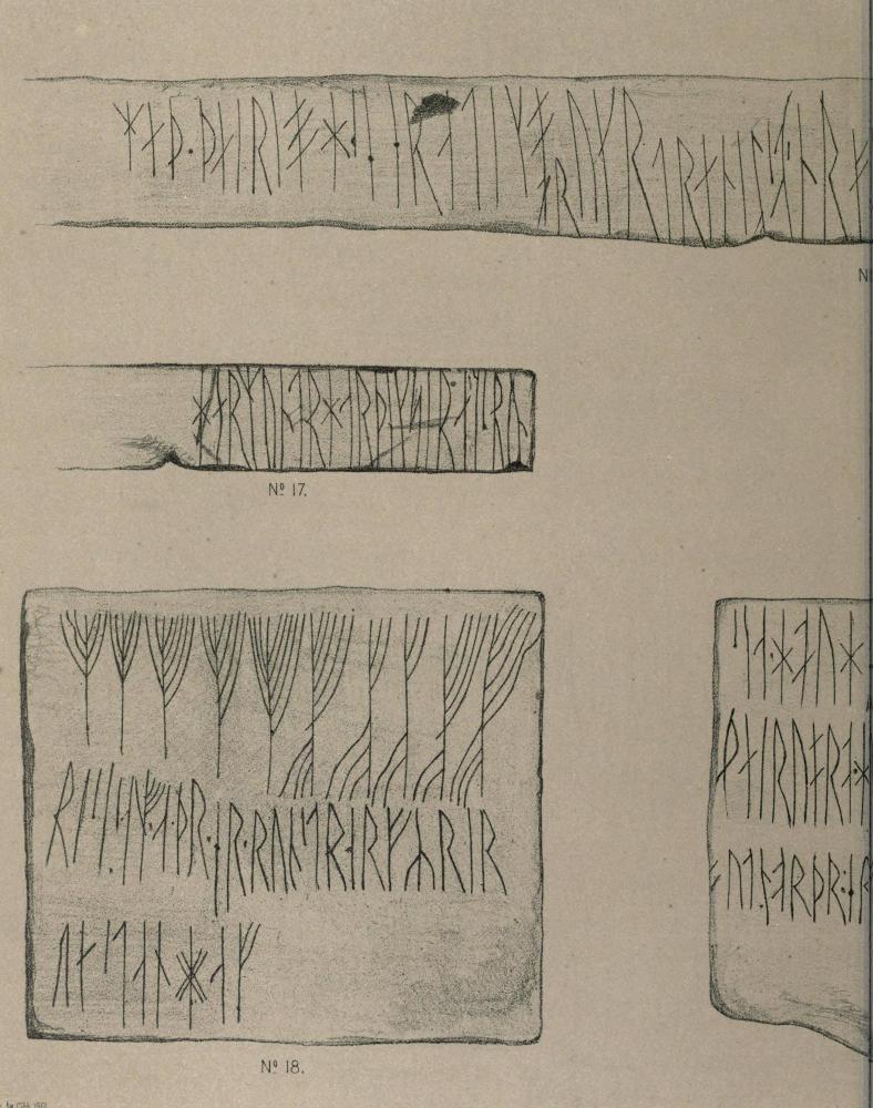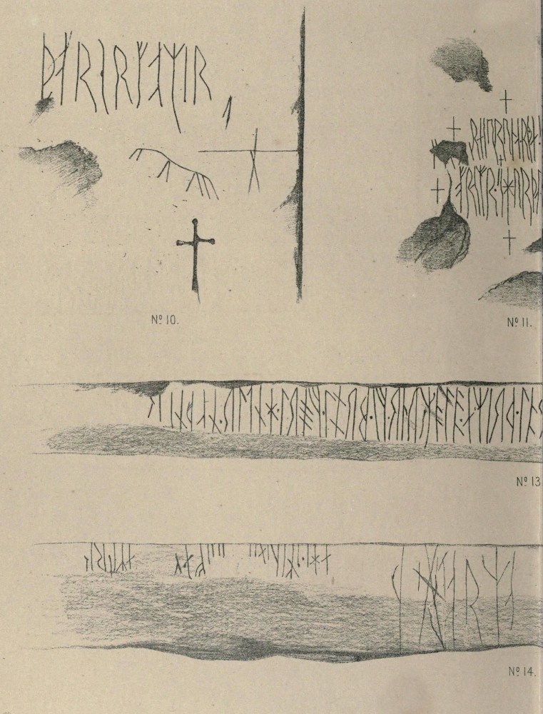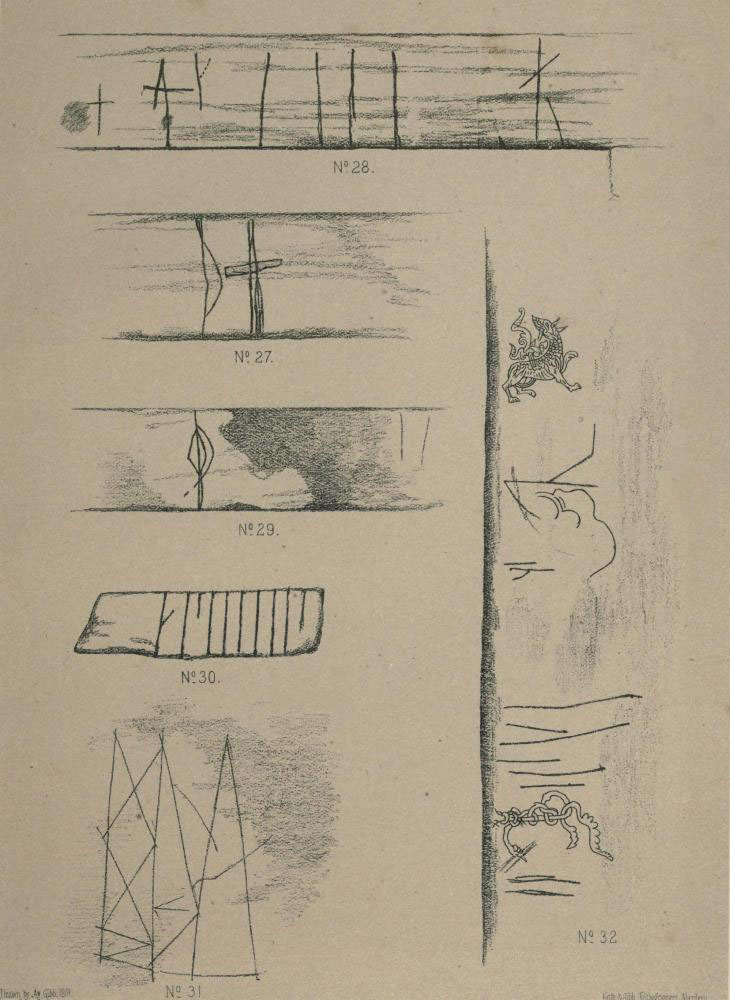 After a few days’ labour the whole of the rubbish filling the chamber was removed, but long ere this was accomplished, the keen eye of Mr. Joseph Robertson discovered the first of the Runic inscriptions. They were high up on the walls of the building, smaller and less distinctly drawn than many that were afterwards discovered, but the important fact of the existence of Runic inscriptions in Orkney, where none had hitherto been found, was at once established.