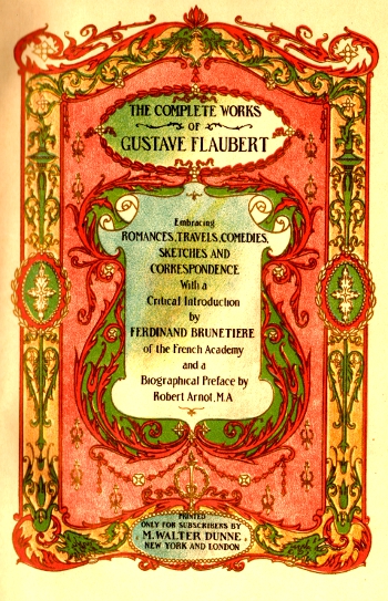 The sun's rays fell perpendicularly, shedding a glittering light on the iron hoops around the masts, the plates of the barricades, and the surface of the water, which, at the prow, was cut into two furrows that spread out as far as the borders of the meadows. At each winding of the river, a screen of pale poplars presented itself with the utmost uniformity. The surrounding country at this point had an empty look. In the sky there were little white clouds which remained motionless, and the sense of weariness, which vaguely diffused itself over everything, seemed to retard the progress of the steamboat and to add to the insignificant appearance of the passengers. Putting aside a few persons of good position who were travelling first class, they were artisans or shopmen with their wives and children. As it was customary at that time to wear old clothes when travelling, they nearly all had their heads covered with shabby Greek caps or discoloured hats, thin black coats that had become quite threadbare from constant rubbing against writing-desks, or frock-coats with the casings of their buttons loose from continual service in the shop. Here and there some roll-collar waistcoat afforded a glimpse of a calico shirt stained with coffee. Pinchbeck pins were stuck into cravats that were all torn. List shoes were kept up by stitched straps. Two or three roughs who held in their hands bamboo canes with leathern loops, kept looking askance at their fellow-passengers; and fathers of families opened their eyes wide while making enquiries. People chatted either standing up or squatting over their luggage; some went to sleep in various corners of the vessel; several occupied themselves with eating. The deck was soiled with walnut shells, butt-ends of cigars, peelings of pears, and the droppings of pork-butchers' meat, which had been carried wrapped up in paper. Three cabinet-makers in blouses took their stand in front of the bottle case; a harp-player in rags was resting with his elbows on his instrument. At intervals could be heard the sound of falling coals in the furnace, a shout, or a laugh; and the captain kept walking on the bridge from one paddle-box to the other without stopping for a moment.