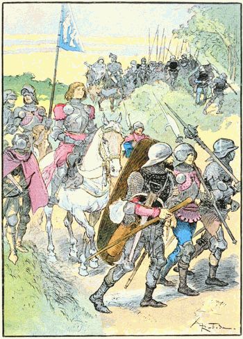 Ceci se passait en la bonne ville de Compiègne, serrée entre ses murailles le long de la rivière d'Oise, à l'entrée de la forêt, sur les confins du Valois et de la Picardie. On était au plus fort de la guerre avec l'Anglais, en l'an 1429, année fameuse qui avait vu surgir des marches de Lorraine la bergère de Vaucouleurs, et la victoire revenir avec elle sous les bannières de France si longtemps poursuivies par le malheur. Après cette merveilleuse délivrance d'Orléans assiégé, il y avait eu la campagne rapide et vigoureuse de Jehanne d'Arc; l'un après l'autre les chefs les plus renommés des bandes anglaises étaient battus, chassés ou pris, l'une après l'autre les villes retombaient au pouvoir du dauphin Charles;—chevauchée héroïque d'une petite armée qui, abattant ou renversant tout devant elle, venait de pousser jusqu'à Reims pour y faire sacrer le roi dans la vieille cathédrale.