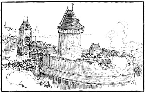 Les guerres duraient depuis si longtemps, l'habitude en était si bien prise que les gens ne semblaient pas trop soucieux; les ménagères bavardaient par groupes en faisant leur marché, les bourgeois à mine placide tournaient autour des paniers à volaille et des corbeilles de fruits, ou plaisantaient avec les paysans, et ceux-ci semblaient peu se préoccuper de l'appareil guerrier entrevu aux remparts, alors qu'avant de leur laisser franchir les portes, les soldats de Flavy les examinaient prudemment dans l'avancée, par crainte de surprise.