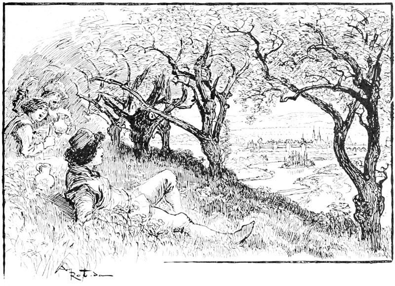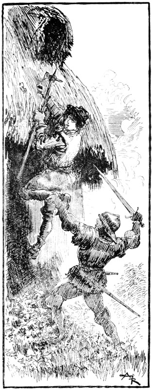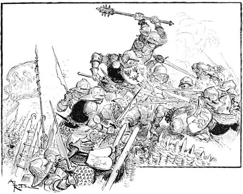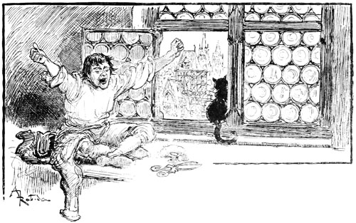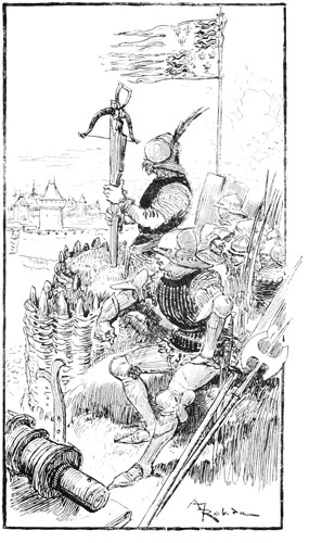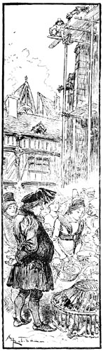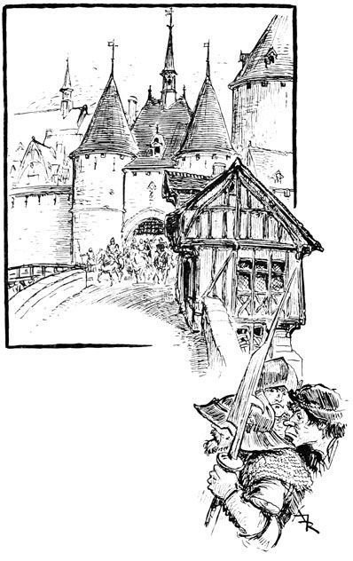 —Vous dites bien vrai, fit Jehan des Torgnoles avec un éclat de rire en se laissant glisser en bas de l'échafaudage, au grand émoi d'un groupe de paysannes surprises de le voir tomber du ciel sur leurs têtes.