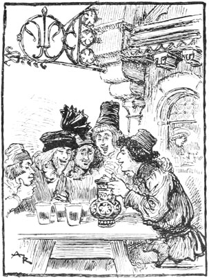 Seul Jehan des Torgnoles assis sur un banc à la porte de l'auberge, contemplait d'un air détaché des choses de ce monde l'enseigne de la Fleur de Lys.