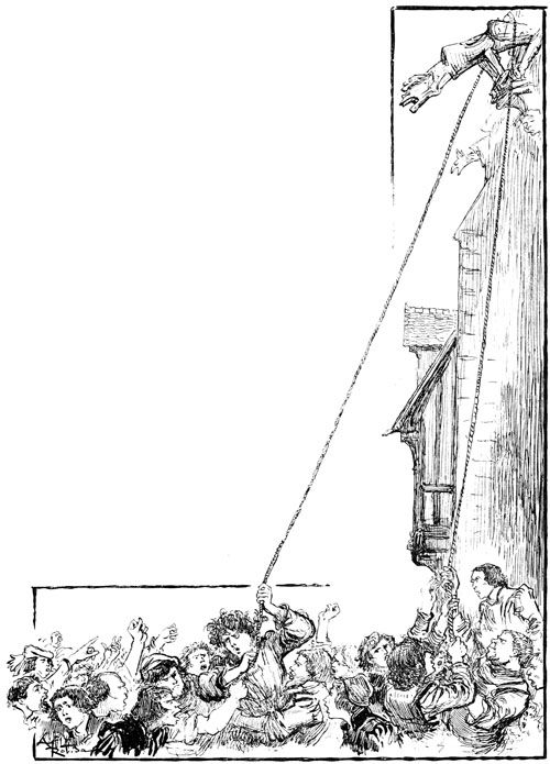 Il en fut bientôt ainsi sur tout le marché; paysans et chalands s'interrompirent dans leurs négociations sur le beurre et les œufs, les légumes ou les volailles, et à leur exemple, dans les rues débouchant au parvis, du Change, de Saint-Antoine ou du pont, les commères regardèrent en l'air sur le pas des portes, les ouvriers se mirent aux fenêtres.
