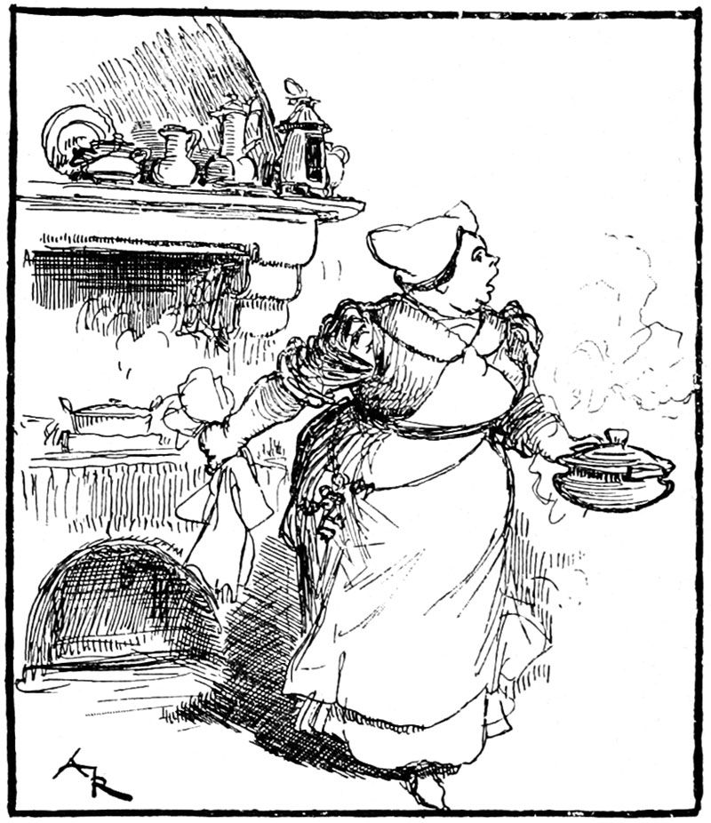 Un tas de trognons de choux et de débris de légumes fournit aux amis de Jehan un supplément de projectiles auxquels répondirent quelques potées d'eau lancées par Rongemaille. Sur ce, quelques cailloux se mêlèrent aux trognons de choux, certaines vitres souffrirent, puis la fenêtre se ferma brusquement, après une bordée d'injures qu'on n'entendit pas, mais l'usurier jaillit de sa porte.