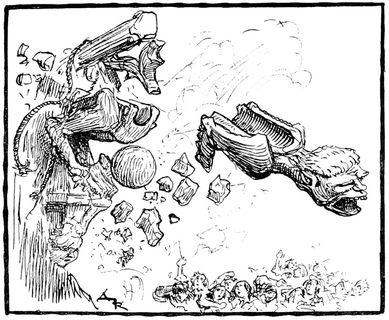 —Oui... Et bien, vous avez donc tous la vue brouillée? Cette vilaine bête qui ouvre si grandement une gueule édentée et qui serre une bourse dans ses griffes... une bourse volée... c'est tout à fait la ressemblance de...