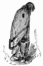 A few moments later, we passed an iron post set firmly into the ground. It marked one of the boundaries of the Indian Reservation. We were[25] now on a tract of land set aside by the United States Government as the living-ground of sixteen hundred "Santee" Sioux Indians. We soon saw more Indians, who, like us, seemed to be moving toward the little village at the Indian agency. Each group had put their belongings into a big[26] bundle, and strapped it upon long poles, which were fastened at one end to the back of a pony. In this bundle the little papooses rode in great comfort, looking like blackbirds peering from a nest. In some cases, an older child would be riding in great glee on the pony's back among the poles. The family baggage seemed about equally distributed between the pony and the squaw who led him. She was preceded by her lord and master, the noble red Indian, who carried no load except his long pipe.