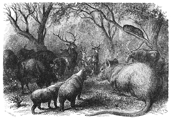 The favorite haunt of this terrible bird was a bluff on the Mississippi River, a short distance above the site of the present city of Alton, Illinois. There it was said to lie in wait, and to keep watch over the broad, open prairies. Whenever some rash Indian ventured out alone to hunt upon this[2] fatal ground, he became the monster's prey. The legend says that the bird, swooping down with the fierce swiftness of a hawk, seized upon its victim and bore him to a gloomy cave wherein it made its horrid feasts. The monster must have had an insatiable appetite or a prolonged existence, for tradition declares that it depopulated whole villages. Then it was that the wise men began to see visions and to prophesy the speedy extinction of the tribe. Years of its ravages followed one upon another, until at length, according to the legend, was lost all reckoning of the time when first that strange, foul creature came to scourge their sunny plains. The aged men, whose youth was but a dim memory, could say only that the bird was as it had always been. None like it had ever been heard of save in vague traditions.