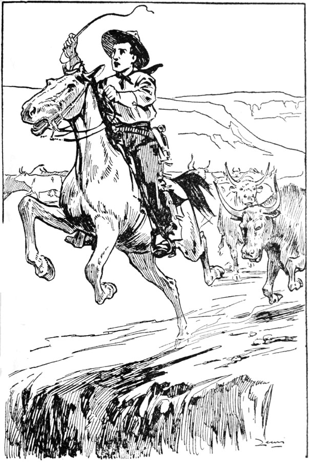 It will also be remembered that while encamped on an island near their home village, the Boy Scouts put off in a motor dory to the rescue of a stranded cattle ship on which Mr. Harkness, a cattle rancher, and his son Harry, a lad of the boys' own age, were returning from London, whither they had just taken a big consignment of stock. In return for their services, including the summoning of aid by wireless, Mr. Harkness invited the boys to spend some time on his cattle range. What adventurous boys would not have leaped at the invitation? But for a time it appeared as if it would be impossible for Rob and his chums to accept it, owing to the fact that the Hampton Academy, which they all attended, resumed its school term early in the fall.