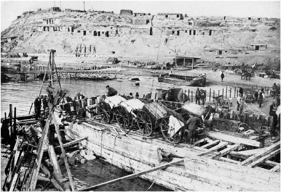 [29]We stayed in Egypt only ten days or so to get accustomed to the heat, and to change our heavy uniforms and hats for the light-weight duck uniforms and sun helmets, suitable for the climate on the Peninsula of Gallipoli. The heat at Heliopolis was too intense to permit of our drilling very much. In the very early morning, before the sun was really strong, we marched out a mile across the desert, skirmished about for an hour or so, and returned to camp for breakfast. The rest of the day we were free. Ordinarily we spent the morning sweltering in our marquees, saying unprintable and uncomplimentary things about the Egyptian weather. In the late afternoon and evening, we went to Cairo. About a mile from where we were camped, a street car line ran into the city. To get to it we generally rode across the desert on donkeys. Every afternoon, as soon as we had finished dinner, little native boys pestered us to hire donkeys. They were the same boys who [30]poked their heads into our marquees each morning and implored us to buy papers. We needed no reveille in Egypt. The thing that woke us was a native yelling "Eengaleesh paper, veera good; veera good, veera nice; fifty thousand Eengaleesh killed in the Dardanelle; veera good, veera nice."