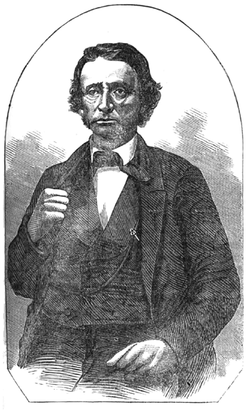 Shortly after eight o'clock Parson Brownlow came upon the stage, leaning upon the arm of Joseph C. Butler, Esq., the President of the Chamber of Commerce.