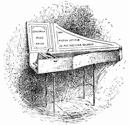 If you will look at this picture of the harpsichord on which Handel played, you will see that it is unlike the grand piano of our day. How does it differ? And yet for this simple instrument Handel wrote beautiful music. Some day you will play his Little Fugues and some of the dances from the Suites. [Pg 7]