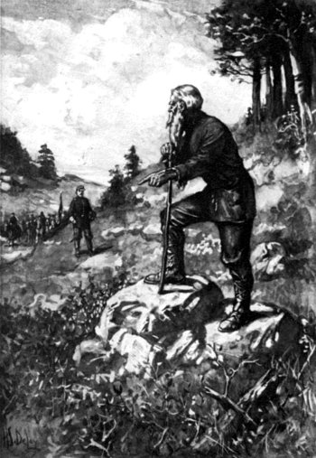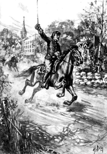 As the head of the column reached the north and south road the leader called a halt, and looked up and down the road, as if expecting some one. He did not have long to wait. The sound of the swift beating of horse-hoofs was heard from the south, and soon three men came riding up. One, a man of distinguished looks and military bearing, was a little in advance of the other two. As he came up, the leader of the little army saluted him awkwardly and exclaimed, "Glad to see you, Colonel. What news?"