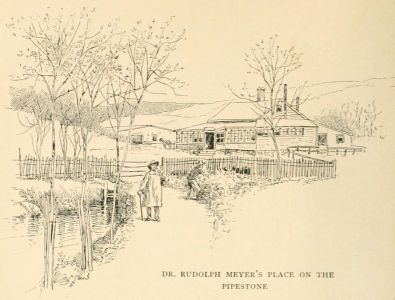 I stopped off the cars at Whitewood, picking that four-year-old village out at hap-hazard as a likely point at which to see how the immigrants live in a brand-new country. I had no idea of the existence of any of the persons I found there. The most perfect hospitality is offered to strangers in such infant communities, and while enjoying the shelter of a merchant's house I obtained news of the distinguished settlers, all of whom live away from the railroad in solitude not to [4]be conceived by those who think their homes the most isolated in the older parts of the country. I had only time to visit Dr. Rudolph Meyer, five miles from Whitewood, in the valley of the Pipestone.
