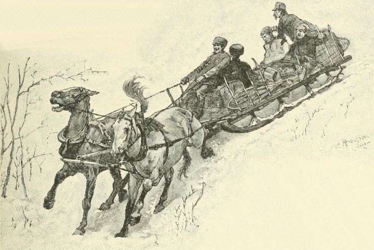 We purchased of the Frenchman a chest of tea, a great bag of lump sugar, and a small case of plug tobacco for gifts to the chief. Then we hired a buck-board wagon, and made ready for the journey to the reserve.