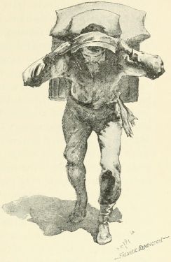 Mr. Remington was anxious to paint Old Sun and his squaw, particularly the latter, and he easily obtained permission, although when the time for the mysterious ordeal arrived next day the old chief was greatly troubled in his superstitious old brain lest some mischief would befall him through the medium of the painting. To the Indian mind the sun, which they worship, has magical, even devilish, powers, and Old Sun developed a fear that the orb of day might "work on his picture" and cause him to die. Fortunately I found in Mr. L'Hereux, the interpreter, a person who had undergone the process without dire consequences, was willing to undergo it again, and who added that his father and mother had submitted to the operation, and yet had lived to a yellow old age. When Old Sun [24]brought his wife to sit for her portrait I put all etiquette to shame in staring at her, as you will all the more readily believe when you know something of her history.