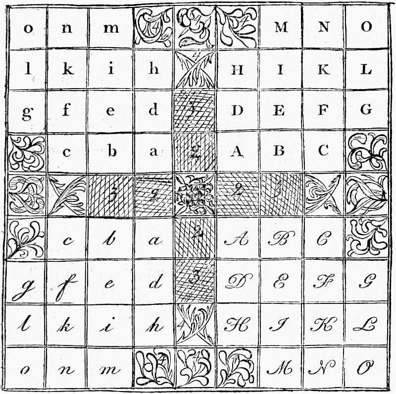 The annexed figure is a sort of plan of the floor of one of these Lapland tents. a is the fire-place. b, b, reindeer skins, six in number, three at the right hand, on entering the tent, and as many at the left. c large fire-wood. d cheese-vessels. e kettle, with its lid. f, behind the first reindeer skin, is the place of the harness. g a barrel or cask. h a store of skins and hair of the reindeer. i the milk-strainer, with its flat cover.[Pg 15]