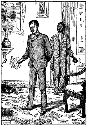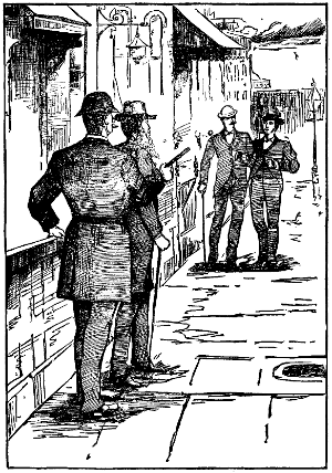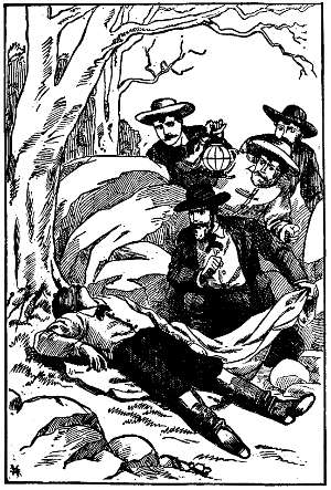 A moment the lanterns flash about, while the men converse in low tones. Then one of them exclaims:
