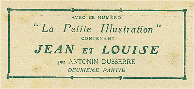 1° LA PETITE ILLUSTRATION, Série-Roman n° 19: Jean et Louise, par M. Antonin Dusserre;