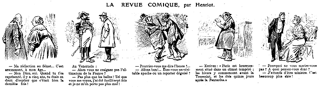 Ancien douanier en retraite, M. Henri Rousseau, auquel les Salons des Indépendants firent fête autrefois pour sa naïveté miraculeuse et sa gaucherie non apprise, a été accueilli avec un pieux respect au Salon d'automne, où la toile reproduite ici occupe une place d'honneur.